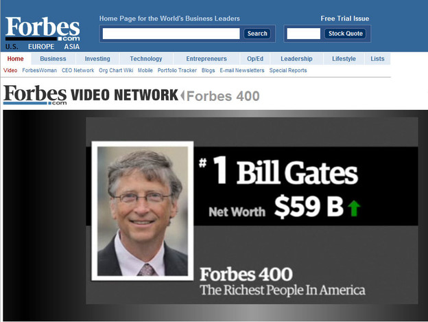 Prema najnovijim podacima objavljenim na Forbesovoj listi najbogatijih građana SAD-a, Bill Gates je i dalje najbogatiji Amerikanac, odnosno vrlo vjerojatno i najbogatiji stanovnik planeta Zemlje.