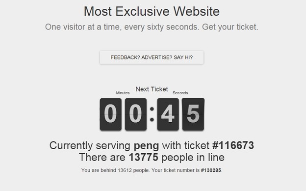 Na prvom mjestu liste od nedavno se nalazi stranica Most Exclusive Website, koja je čak natjerala Washington Post da s njezinim vlasnikom napravi intervju. Stranicu se može najbolje opisati kao "čekanje u redu". Vrlo dugo čekanje. Naime, kada na nju dođete, morat ćete upisati svoje ime/nadimak, preuzeti kartu za posjetu, te čekati dok ne dođete na red, što može potrajati doslovce danima. Kada napokon "prozovu" vaš broj, imat ćete punih 60 sekundi samo za sebe, što znači da ćete biti njezin ekskluzivni posjetitelj, jer je to vrijeme rezervirano samo za vas.