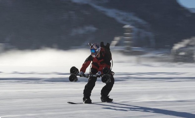 Drugim riječima, snowboarder doslovce nosi mlazni motor u svojoj ruci, a da upravljanje njime nije uopće tako zahtjevno i teško, svjedoči ovaj video dolje u kojem su angažirali profesionalnog snowboardera Jamiea Borrowa da isproba kako je to boardati na mlazni pogon. On je na smrznutom jezeru u švicarskom St. Moritzu uspio postići brzinu od 80 km/h i odmah se oduševio ovim "gadgetom".
