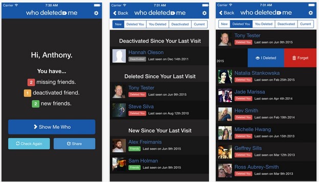 Aplikacija pod znakovitim nazivom "Who Deleted Me on Facebook" (Tko me je izbrisao s Facebooka), omogućit će vam praćenje otkazivanja Facebook prijateljstava putem Android i iOS telefona, kao i putem web ekstenzije za Chrome preglednik na vašem računalu.