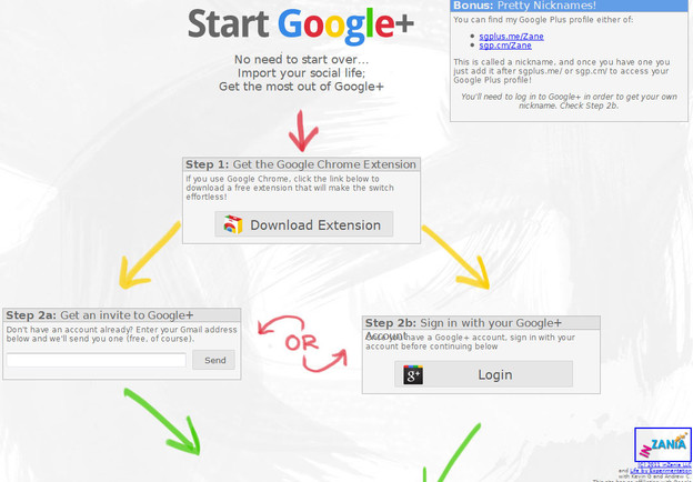 Dodatak pod nazivom Start G+ omogućava korisnicima uvoz fotografija s Facebooka, te objavljivanje sadržaja s Google+ na Facebooku i Twitteru. Nakon što preuzmete dodatak i prođete instalaciju, morate posjetiti stranicu svojeg Google+ profila. Pokraj nove ikone za obavijesti s Gmaila, nalaze se ikone za Facebook i Twitter (gornji desni ugao preglednika).
