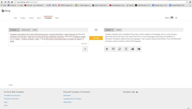 Dakako, odmah po primitku ovog priopćenja, išli smo provjeriti kako funkcionira prevođenje s hrvatskog na engleski (i obrnuto), te usporediti Microsoft Translator s Google prevoditeljem.