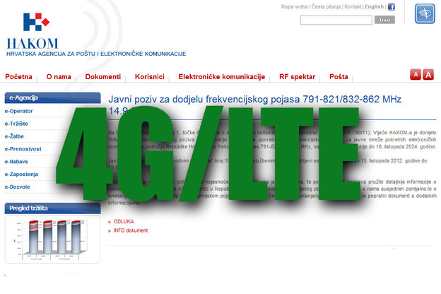 Nakon oslobađanja frekvencijskog pojasa od 790 do 862 MHz uslijed prelaska na digitalno emitiranje, HAKOM napokon raspisuje javni poziv za dodjelu spomenutog frekvencijskog pojasa za mreže pokretnih komunikacija.