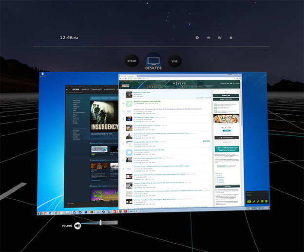 Prva od njih pod nazivom Steam Desktop Overlay, omogućuje vam da desktop ekran vašeg računala ubacite u VR okoliš, što znači da doslovce možete surfati, čitati mailove, provjeravati statuse na društvenim mrežama i slati lajkove vijestima na Vidi.hr portalu, bez potrebe za skidanjem headseta s glave. Pored toga, nećete uopće morati koristiti miš ili trackpad, jer će integrirani Vive kontroleri preuzeti njihovu ulogu, pa ćete samo trebati pritisnuti "sistemski gumb" za posjetu svojem desktopu.