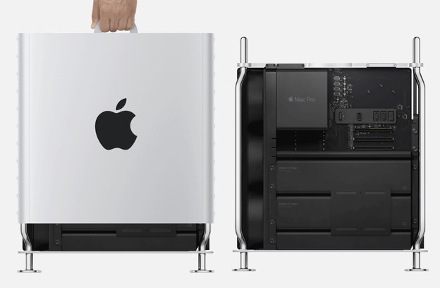 Posebna priča kod ovog računala je dizajn koji se temelji na okviru od nehrđajućeg čelika i kućištu s okretnom ručkom koja omogućuje jednostavno otvaranje i izvlačenje, a Apple se posebno ponosi pristupom ekspanzijskim slotovima u 360 stupnjeva, što omogućuje vrlo jednostavnu zamjenu i nadogradnju svih komponenti, što znači da je računalo izrazito modularno, kao što možete vidjeti u ovom videu.