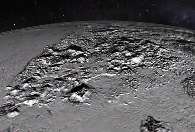 Snimke uključuju animirani prelet iznad Plutona u području Norgay Montesa (Norgay Mountains), planinskog lanca koji je dobio ime po prvom istraživaču Everesta, Šerpi Tenzingu Norgayu, te preko intrigatnog terena pod nazivom Sputnik Planuma (Sputnik Plain), koji nosi ime prvog zemaljskog umjetnog satelita.