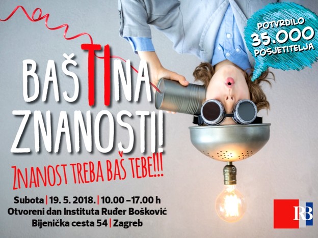 Otvoreni dan Instituta (ODI), tradicionalno znanstveno – popularno događanje koje je do sada na Institutu Ruđer Bošković (IRB) ugostilo više od 35 tisuća posjetitelja svih uzrasta, ove će se godine održati u subotu 19. svibnja, od 10 do 17 sati uz besplatan ulaz na sve radionice i predavanja. Kao i prijašnjih godina, za sve posjetitelje pripremljen je bogat program koji uključuje 14 znanstveno – popularnih predavanja za sve uzraste, 16 tematskih punktova u različitim laboratorijima gdje će znanstvenici IRB-a izvoditi mnoštvo pokusa iz različitih znanstvenih područja i različite druge aktivnosti.