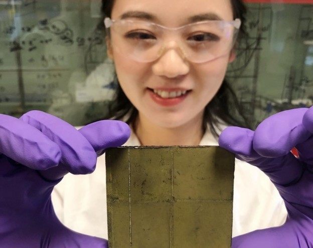 Dr. Qian Wang s takozvanim "listom fotokatalizatora" koji omogućuje umjetnu fotosintezu. Photo Credit: Sveučilište Cambridge.