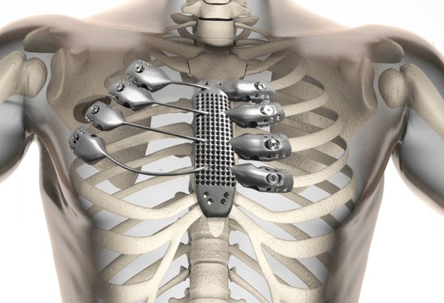 Najnoviji slučaj jednog takvog korištenje tehnologije dolazi nam iz Španjolske, gdje su kirurzi Sveučilišne bolnice u Salamanci, 54-godišnjem pacijentu oboljelom od raka, ugradili u prsa 3D printanu strukturu od titanija, kojom su izveli rekonstrukciju prsnog koša s umjetnim rebrima i prsnom kosti.